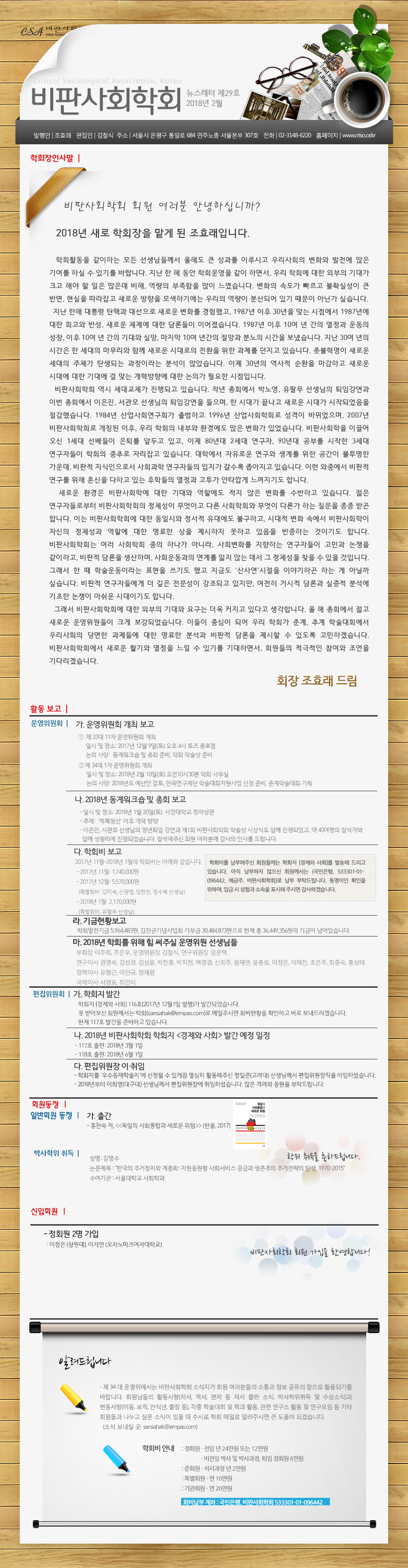 비판사회학회 뉴스레터 29호입니다.